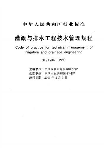 SL/T 246-1999 灌溉与排水工程技术管理规程(附条文说明)