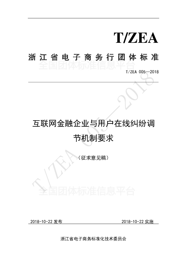 T/ZEA 005-2018 互联网金融企业与用户在线纠纷调节机制要求