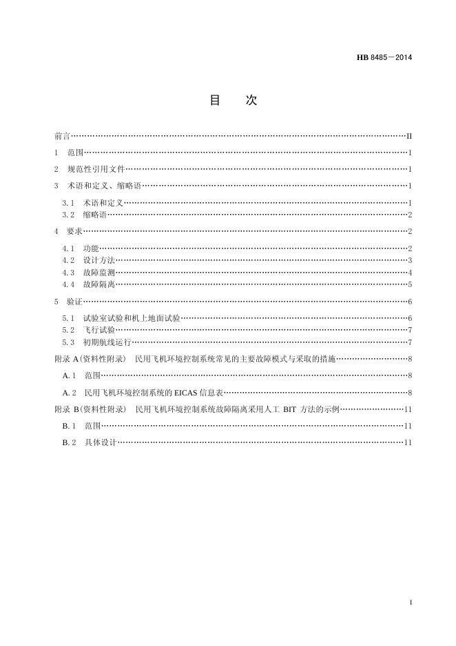 HB 8485-2014(2017) 民用飞机环境控制系统故障隔离要求