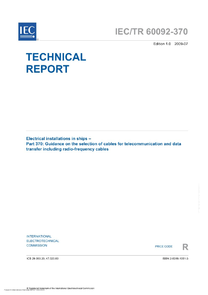 IEC TR 60092-370:2019 船用电气装置.第370部分 包括射频电缆在内的通信和数据传输电缆的选择指南