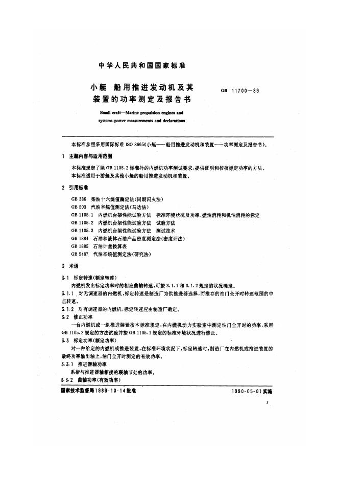 CB/T 3888-1999 小艇 船用推进发动机及其装置的功率测定及报告书