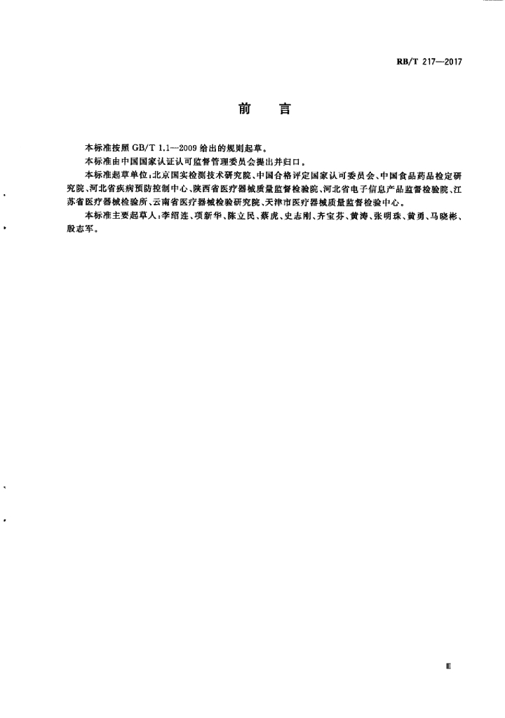RB/T 217-2017 检验检测机构资质认定能力评价医疗器械检验机构要求