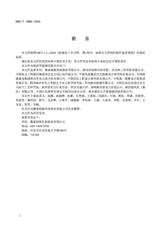 隆基绿能科技股份有限公司、陕西省标准化研究院、西安热工研究院有限公司、中国电力工程顾问集团西北电力设计院有限公司、中国电建集团西北勘测设计研究院有限公司、中国能源建设集团陕西省电力设计院有限公司、中联西北工程设计研究院有限公司、中铁第一勘察设计院集团 有限公司、国网陕西省电力有限公司电力科学研究院、华电陕西能源有限公司、中国石油长庆油田分公司油气工艺研究院、陕西省电力行业协会、西安交通大学、国网陕西省电力有限公司、陕西鼓风机(集团)有限公司、中国石化销售有限公司陕西石油分公司、陕西盛世九天新能源科技有限公