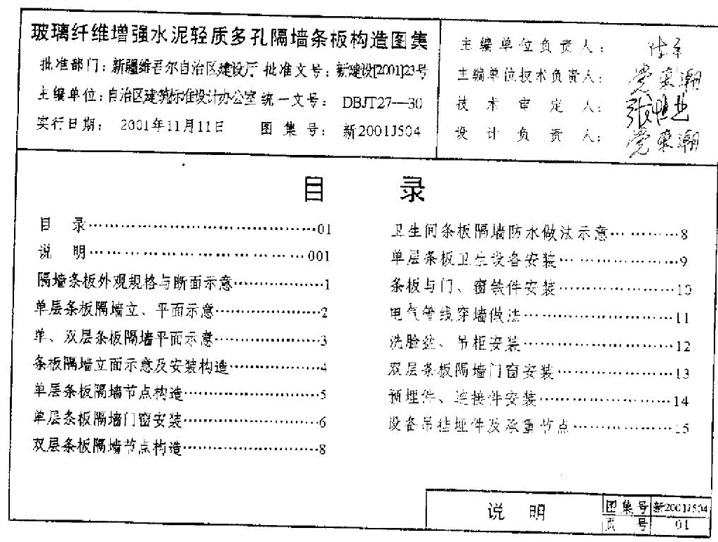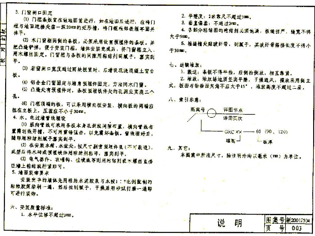 新2001J504 玻璃纤维增强水泥轻质多孔隔墙条板构造图集