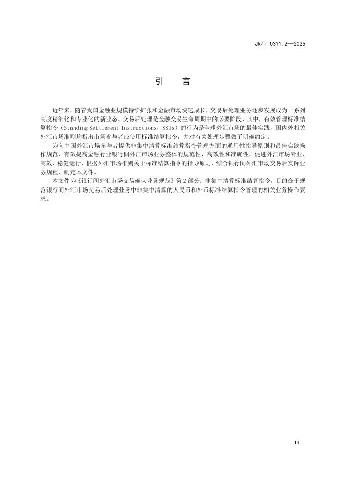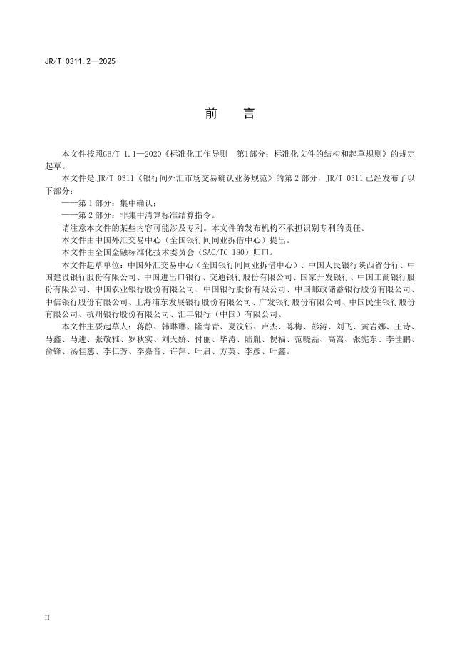 JR/T 0311.2-2025 银行间外汇市场交易确认业务规范 第2部分:非集中清算标准结算指令