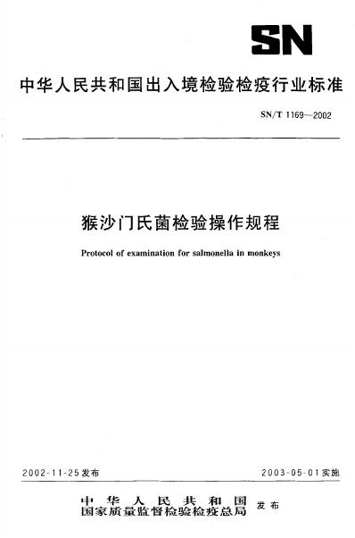 SN/T 1169-2002 猴沙门氏菌检验操作规程
