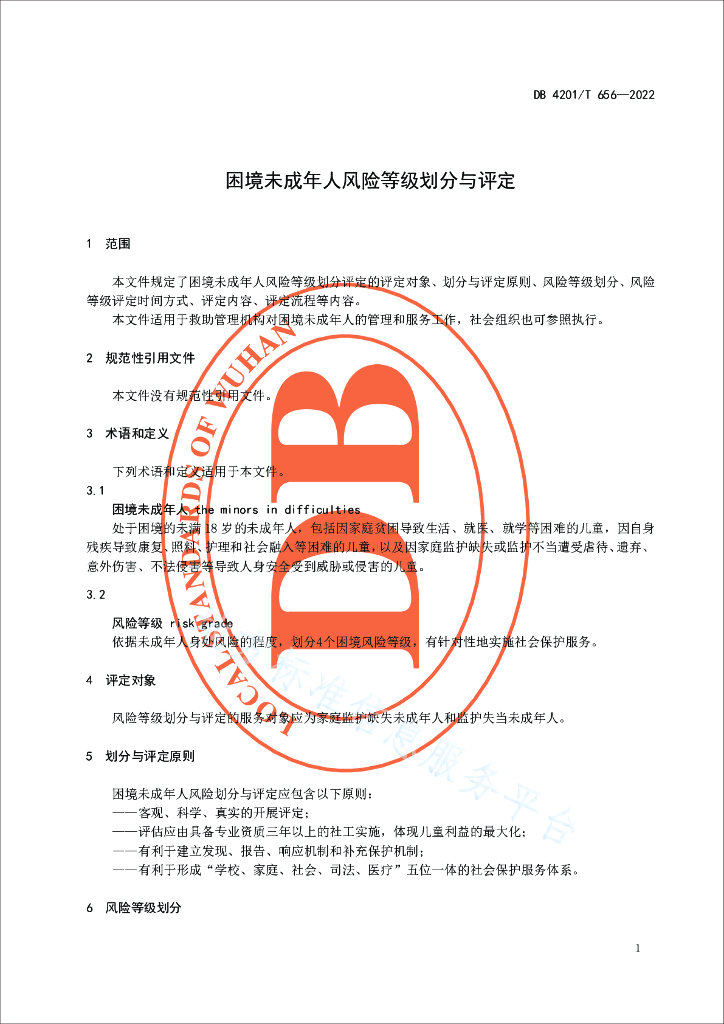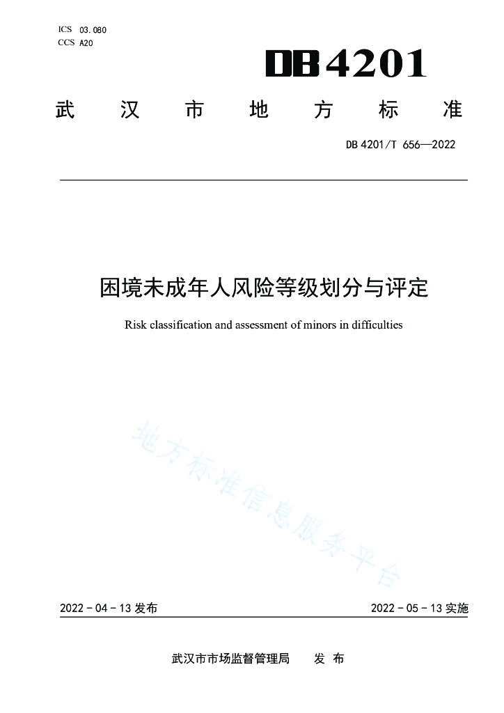 DB4201/T 656-2022 困境未成年人风险等级划分与评定