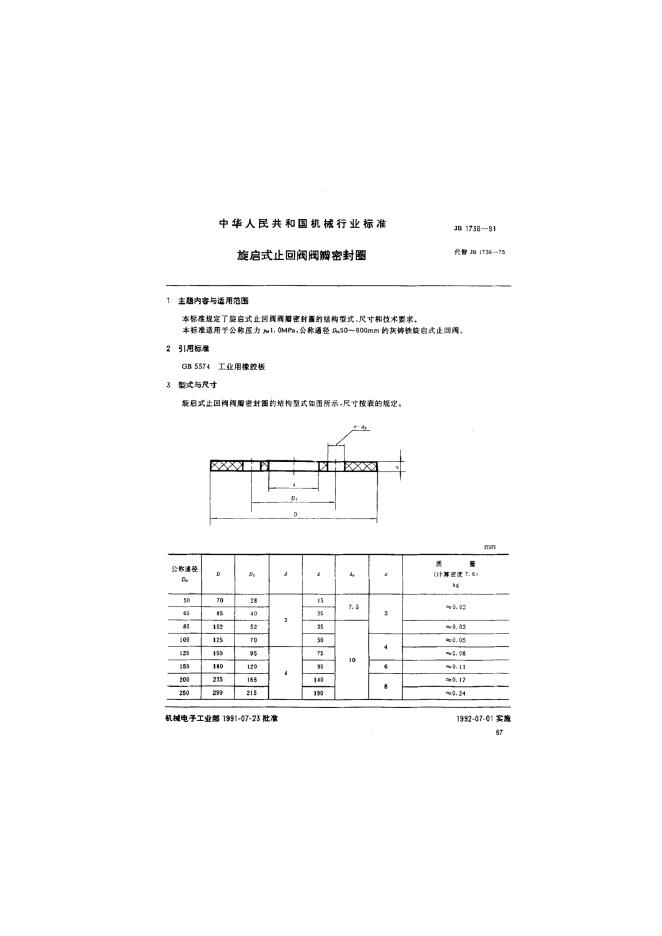 JB 1736-1991 旋启式止回阀阀瓣密封圈