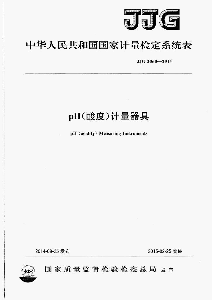 JJG 2060-2014 pH(酸度)计量器具