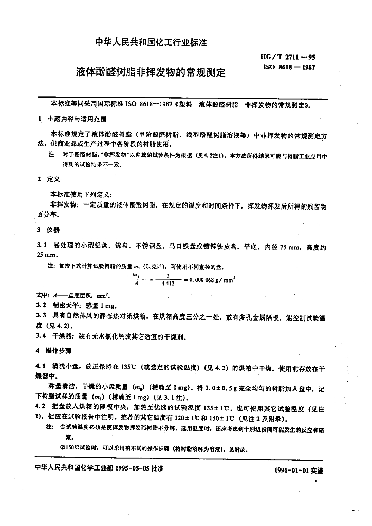 HG/T 2711-1995 液体酚醛树脂水混溶性的测定