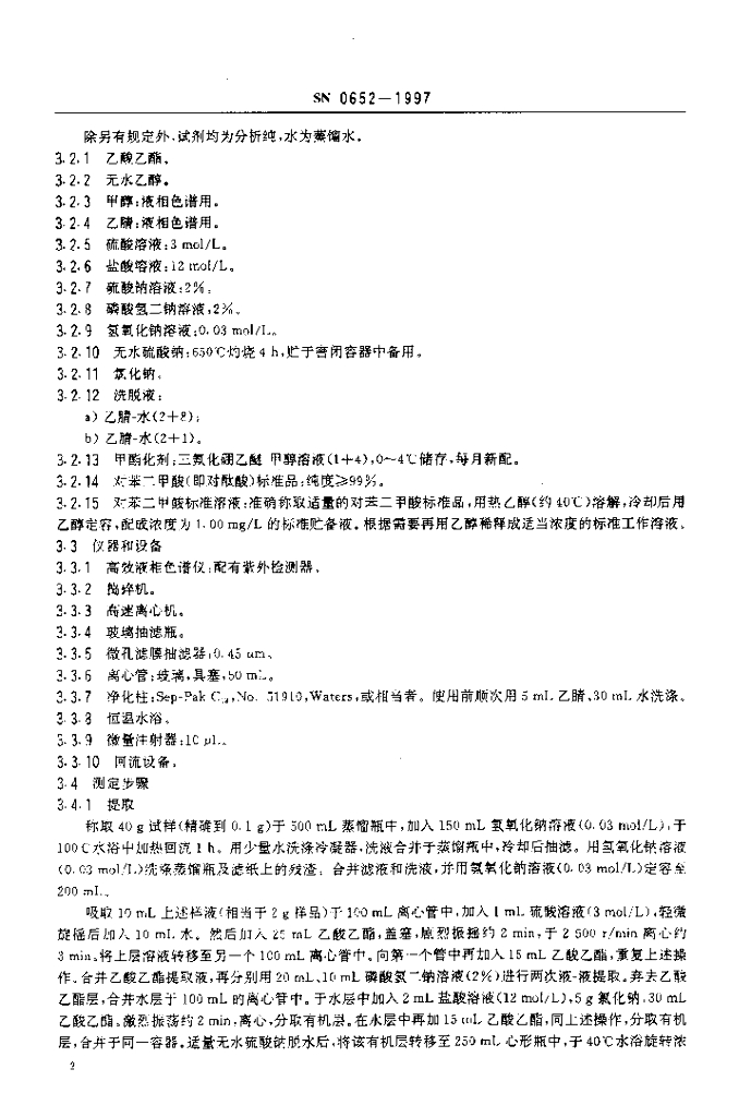 SN 0652-1997 出口水果中对酞酸铜残留量检验方法