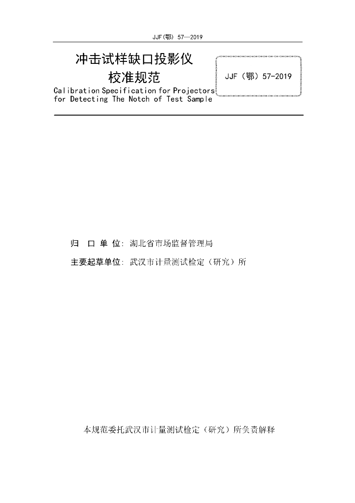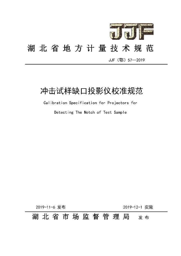 JJF(鄂)57-2019 冲击试样缺口投影仪校准规范