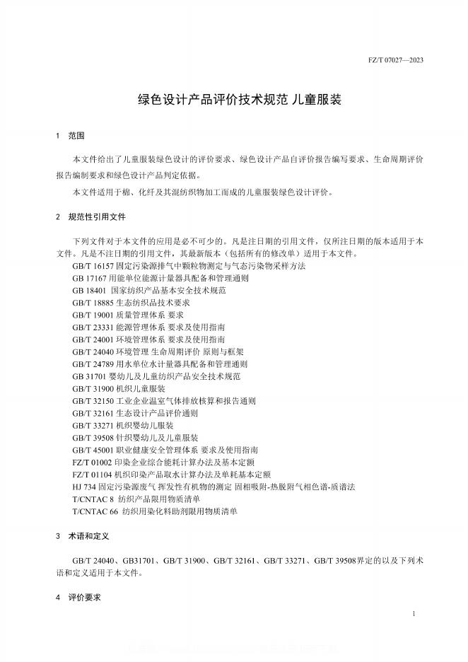 FZ/T 07027-2023 绿色设计产品评价技术规范 儿童服装