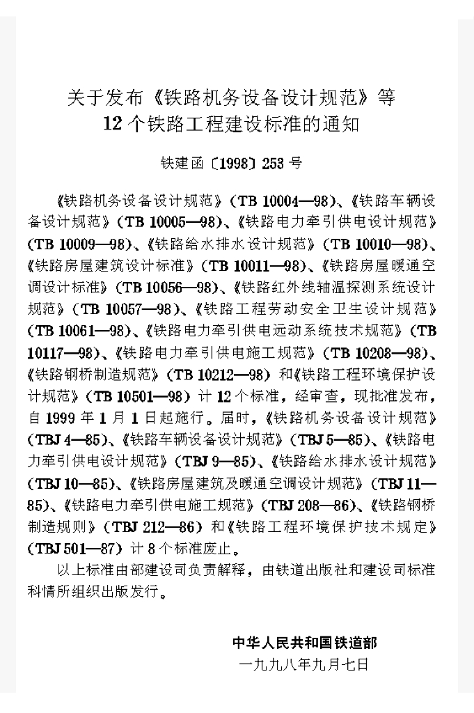 TB 10056-1998 铁路房屋暖通空调设计标准