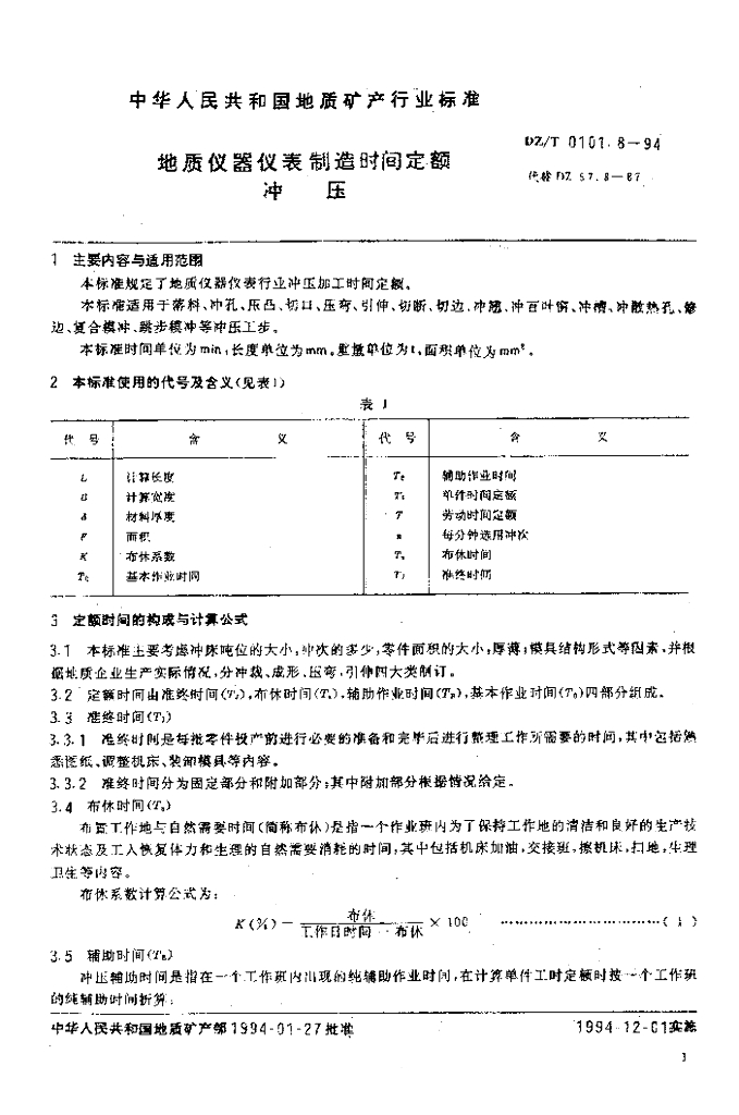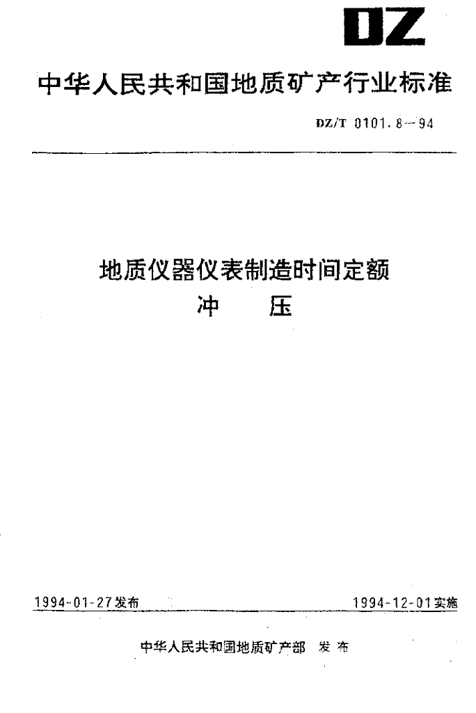 DZ/T 0101.8-1994 地质仪器仪表制造时间定额冲压