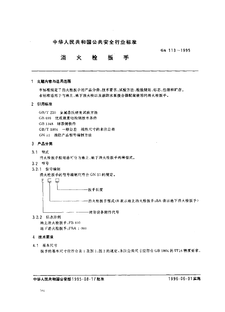 GA 113-1995 消火栓扳手