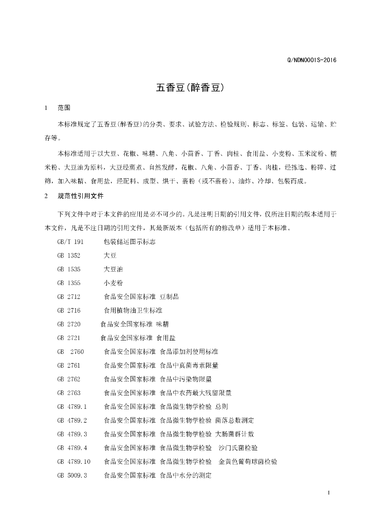 Q/NDN 0001S-2016 南乐县道德金农产品开发有限公司 香豆(醉香豆)