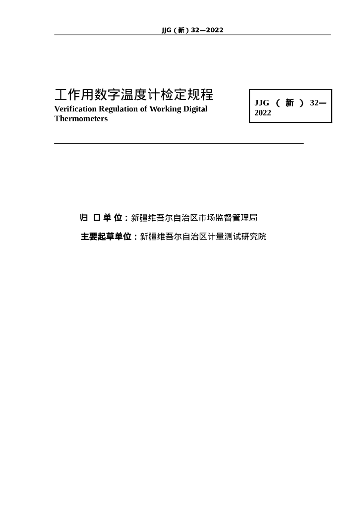JJG(新)32-2022 工作用数字温度计检定规程
