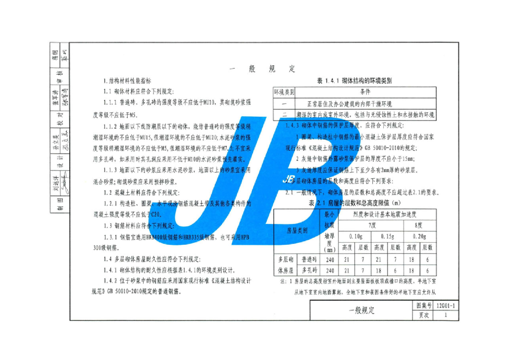 12G01-1 砌体结构构造图集(天津市建筑标准设计图集)