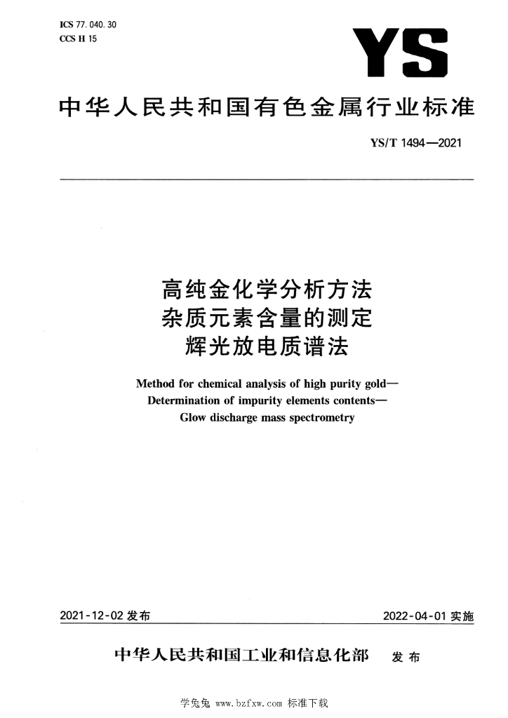 - 国际标准分类号:77.040.30