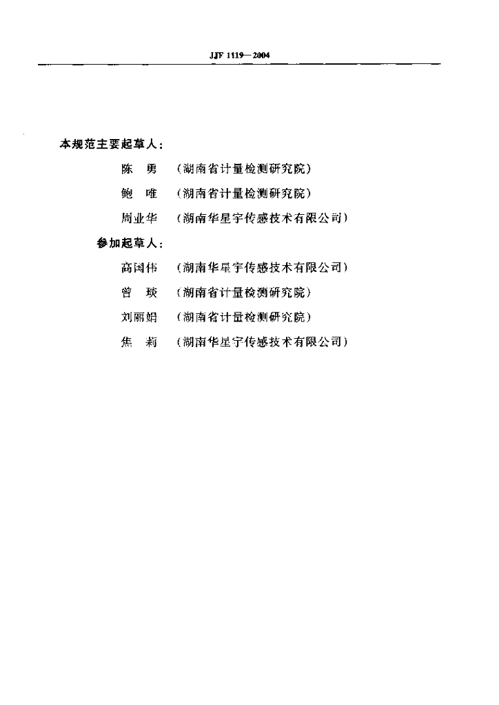陈勇(湖南省计量检测研究院)、鲍唯(湖南省计量检测研究院)、周业华(湖南华星宇传感技术有限公司)、高国伟(湖南华星宇传感技术有限公司)、曾琰(湖南省计量检测研究院)、刘丽娟(湖南省计量检测研究院)、焦莉(湖南华星宇传感技术有限公司)