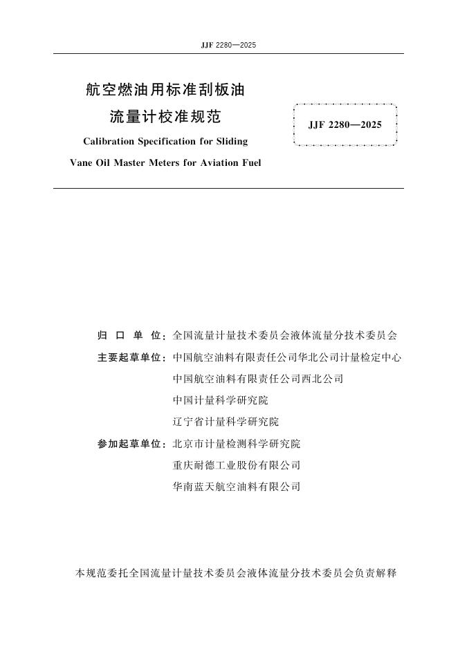 JJF 2280-2025 航空燃油用标准刮板油流量计校准规范