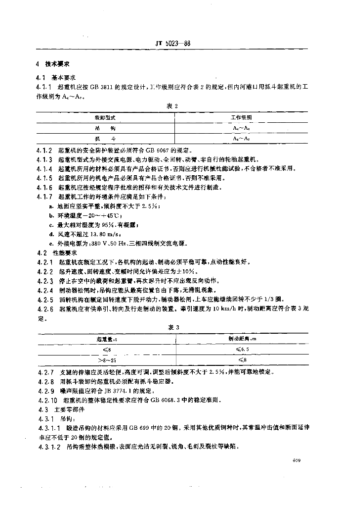JT 5023-1988 港口电动轮胎起重机技术条件