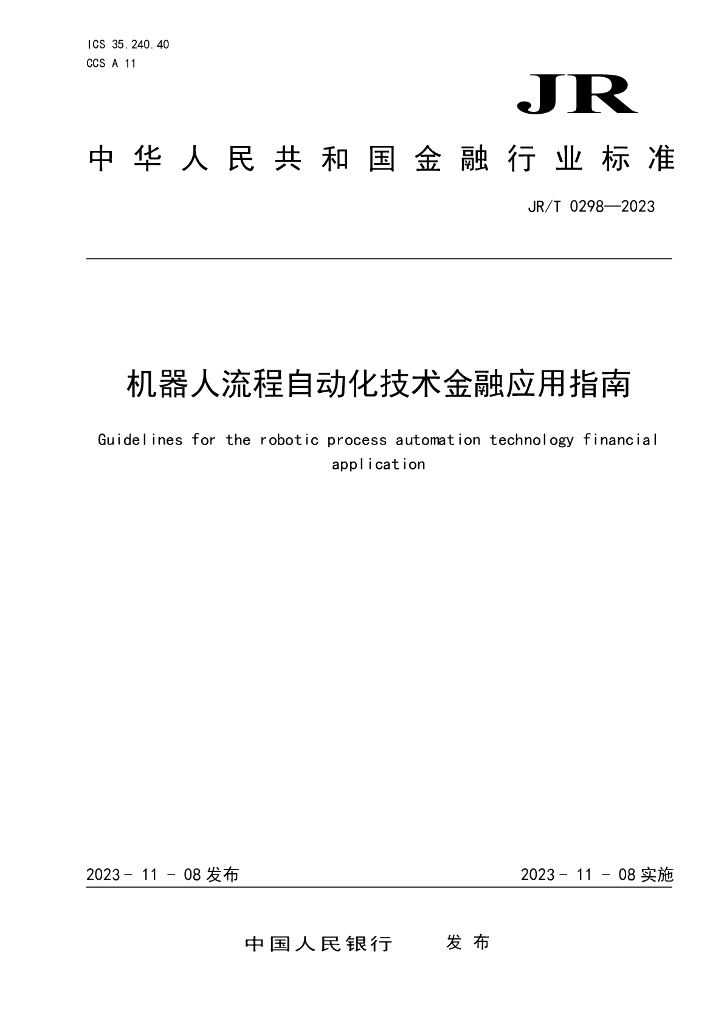 JR/T 0298-2023 机器人流程自动化技术金融应用指南