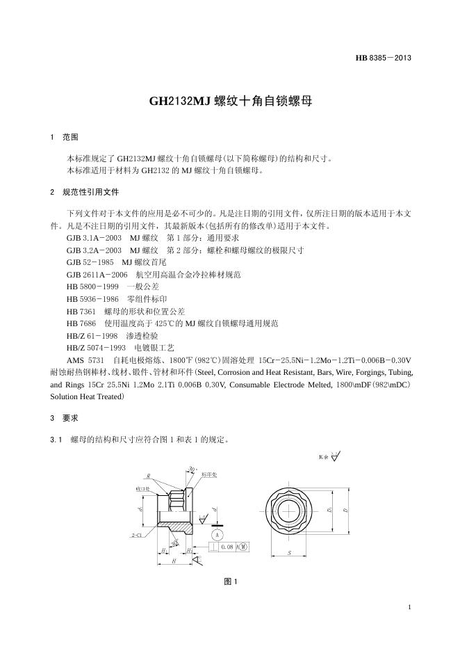 HB 8385-2013(2017) GH2132MJ螺纹十角自锁螺母