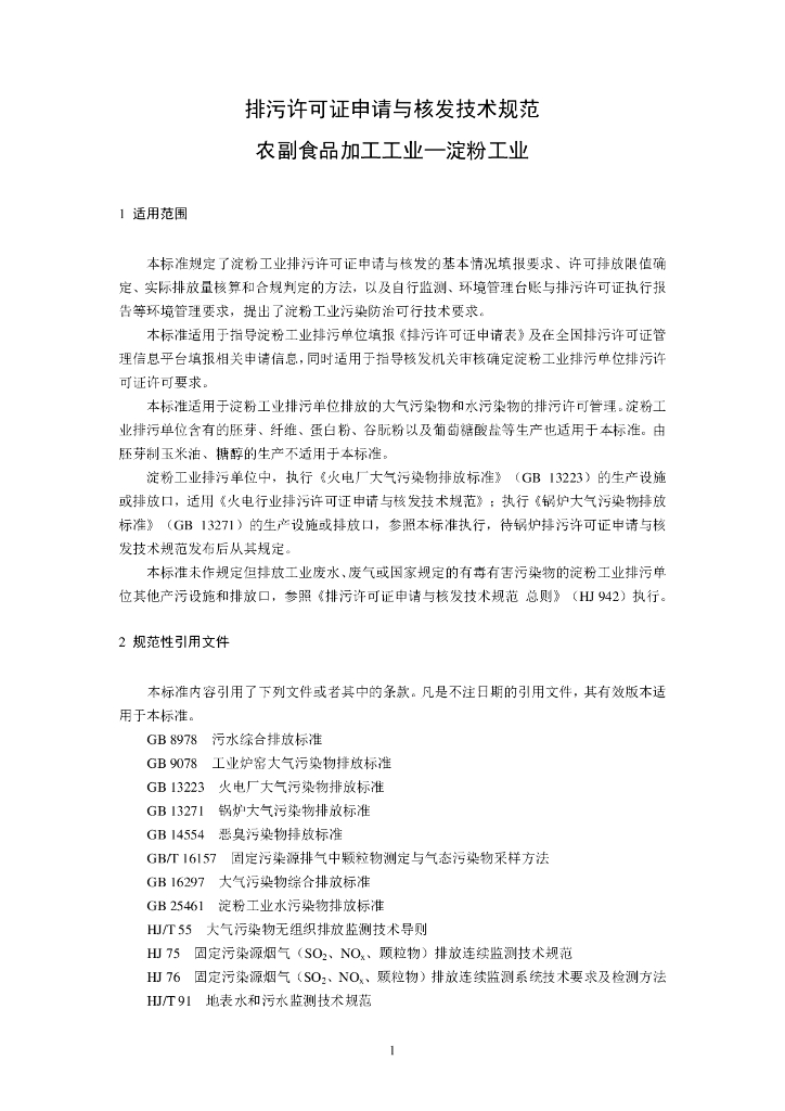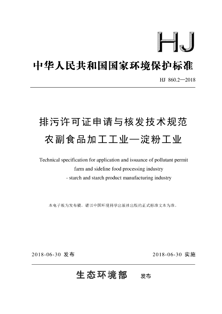 HJ 860.2-2018 排污许可证申请与核发技术规范 农副食品加工工业—淀粉工业