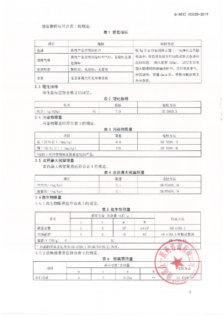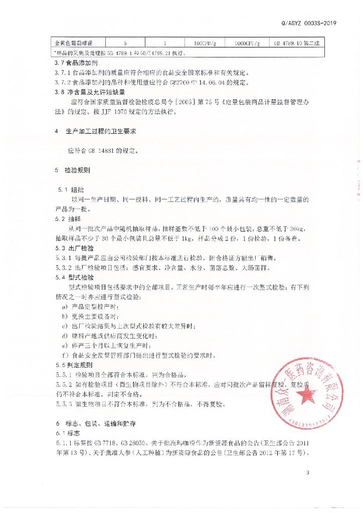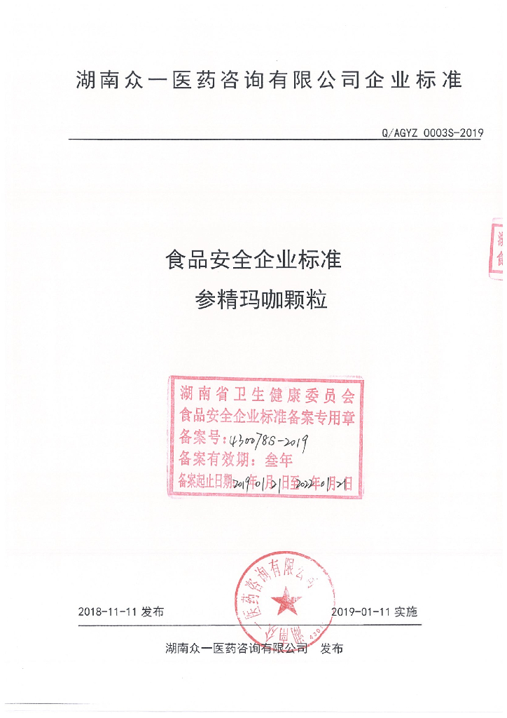 Q/AGYZ 0003S-2019 参精玛咖颗粒