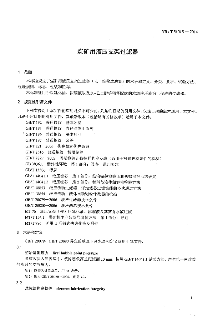 NB/T 51016-2014 煤矿用液压支架过滤器