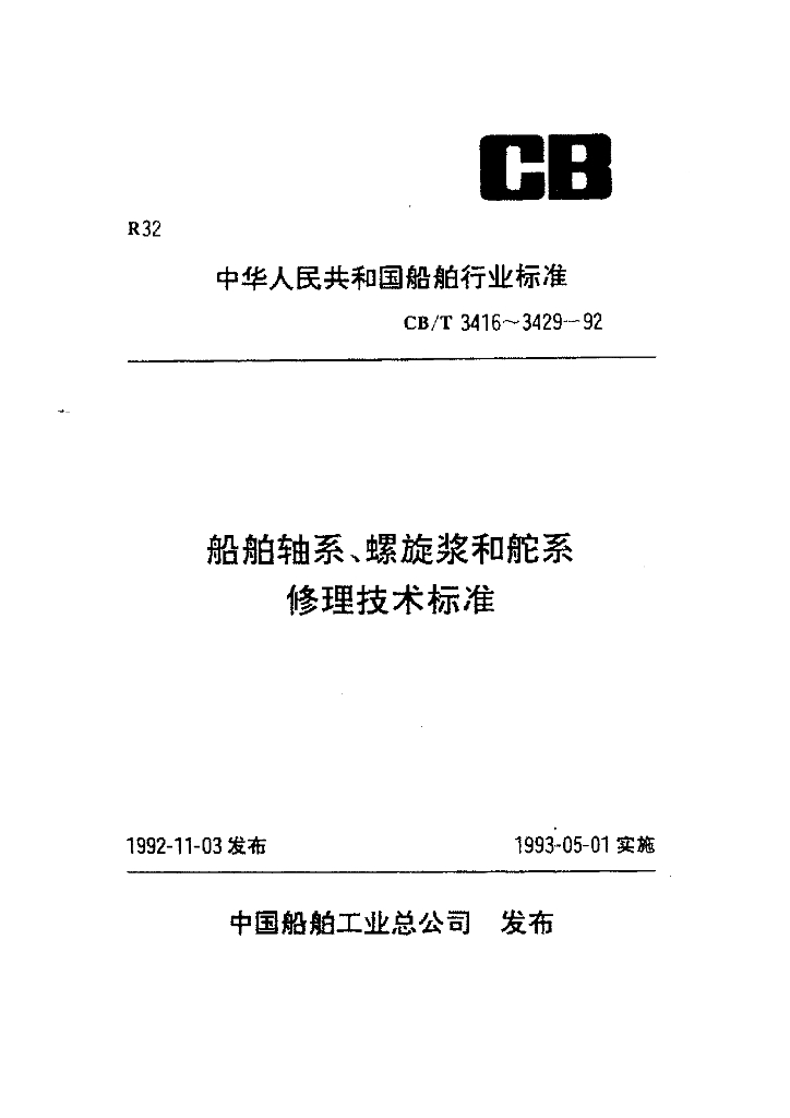 CB/T 3418-1992 船舶轴系轴承、尾轴管及管路修理技术要求