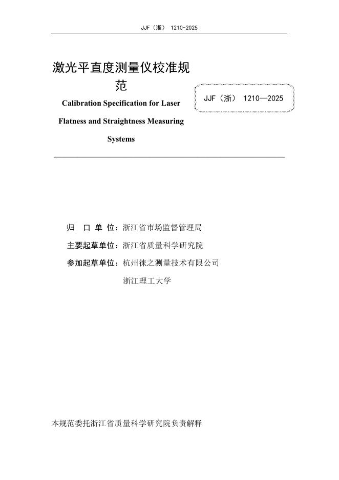 JJF(浙)1210-2025 激光平直度测量仪校准规范