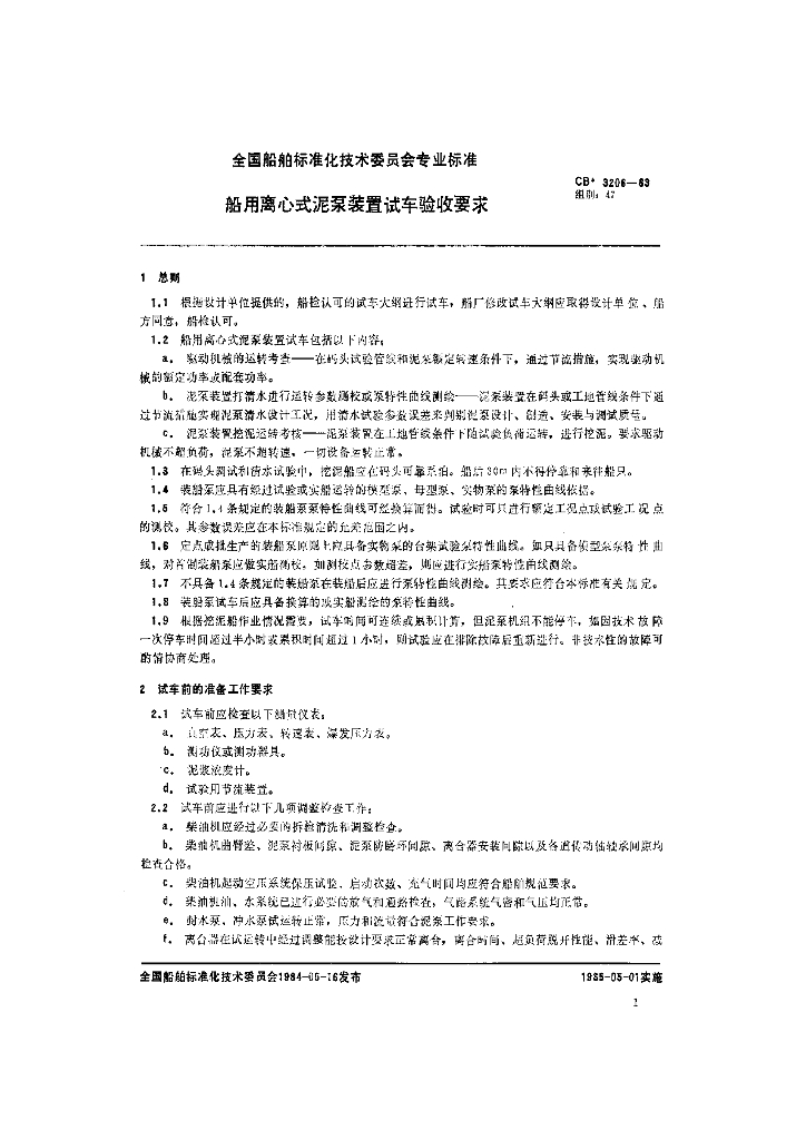 CB 3206-1983 船用离心式泥泵装置试车验收要求