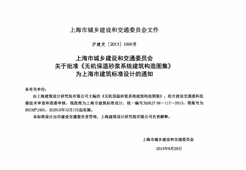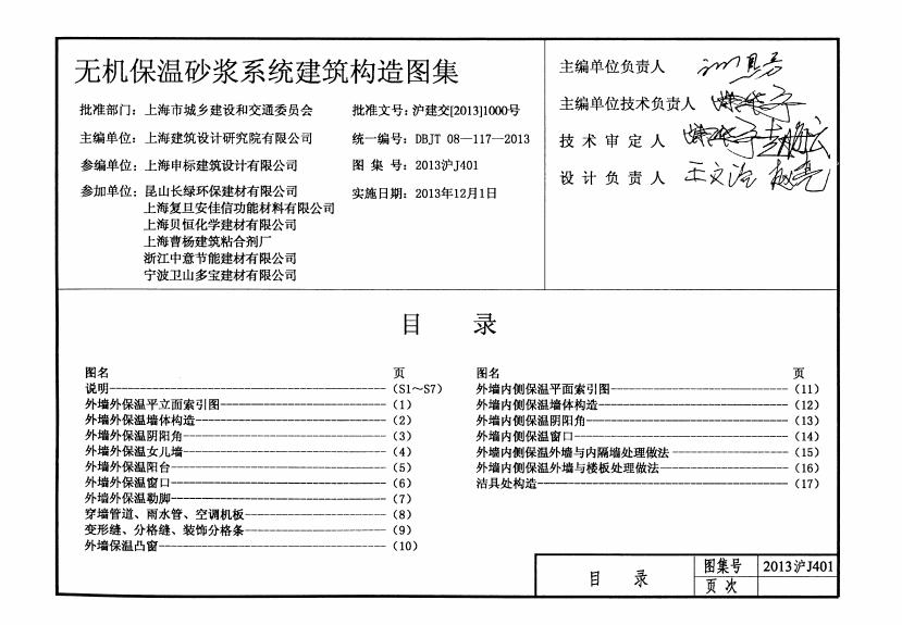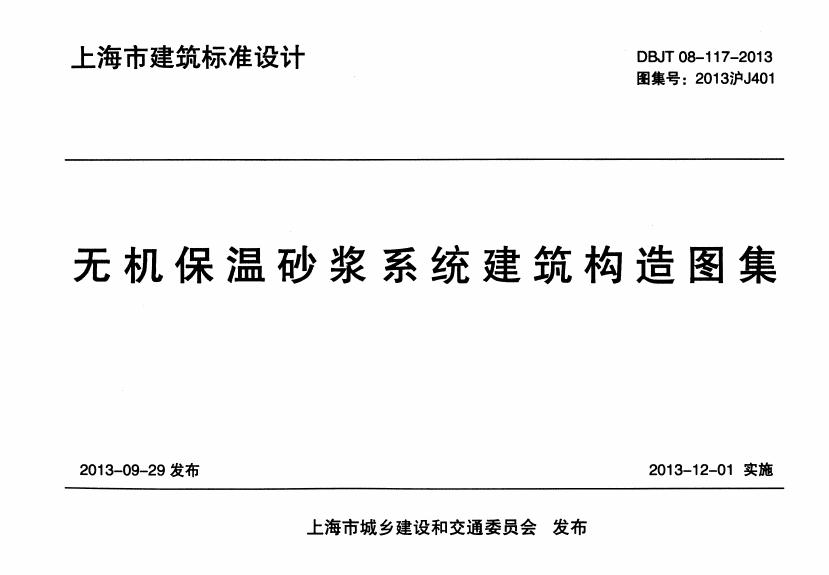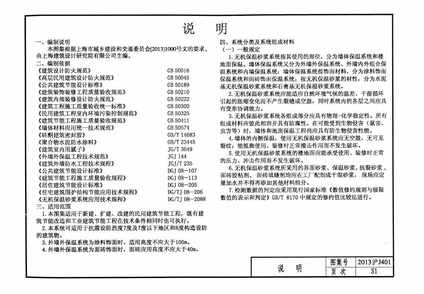 2013沪J401 无机保温砂浆系统建筑构造图集