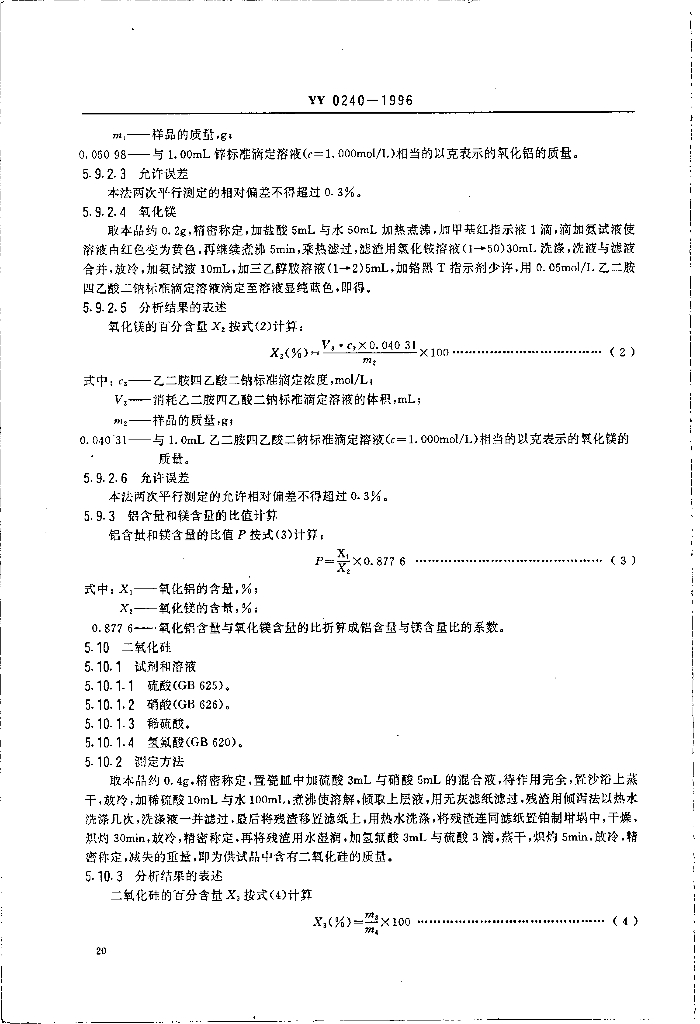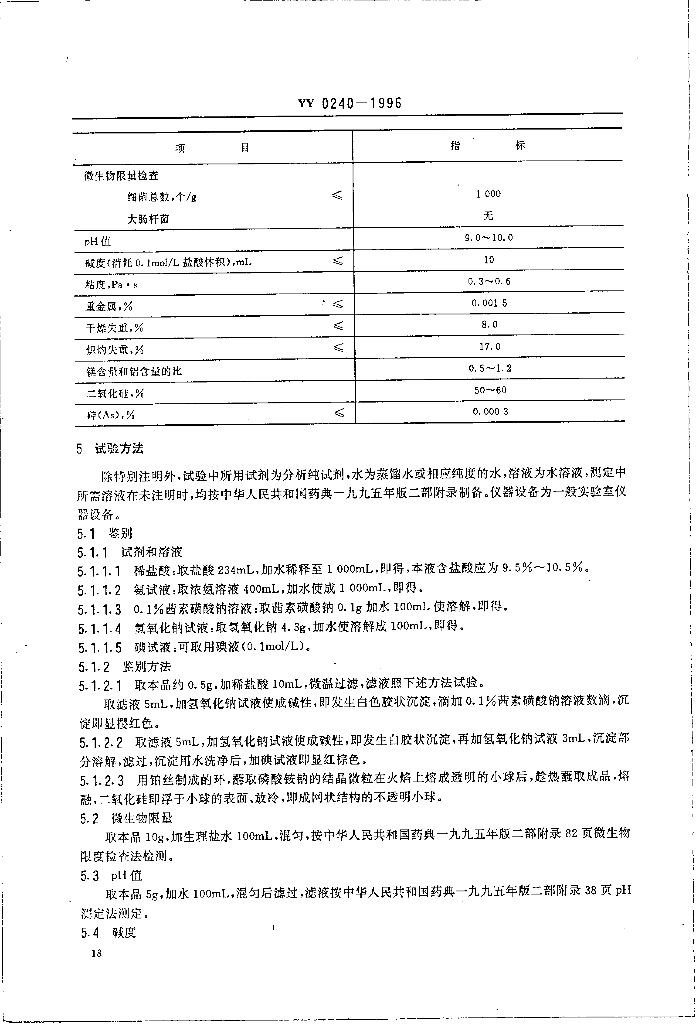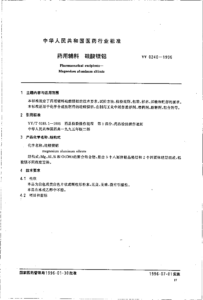 YY 0240-1996 药用辅料硅酸镁铝