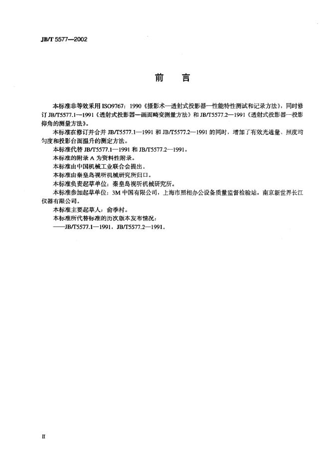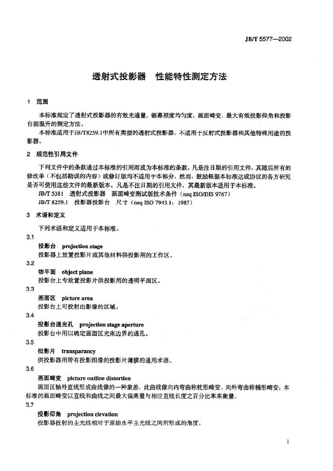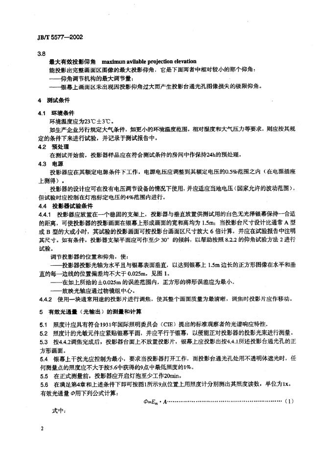 JB/T 5577.2-1991 透射式投影器投影仰角测量方法