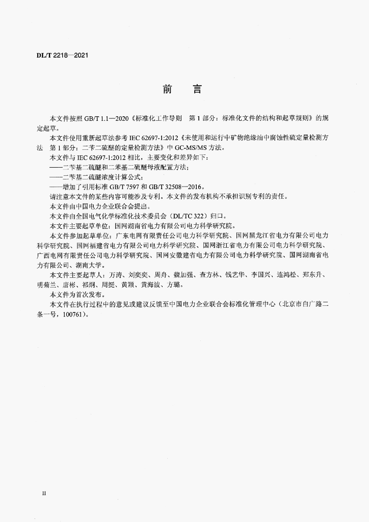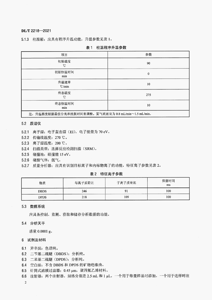 DL/T 2218-2021 绝缘油中腐蚀性硫二苄基二硫醚定量检测方法气相色谱多重质谱联用法