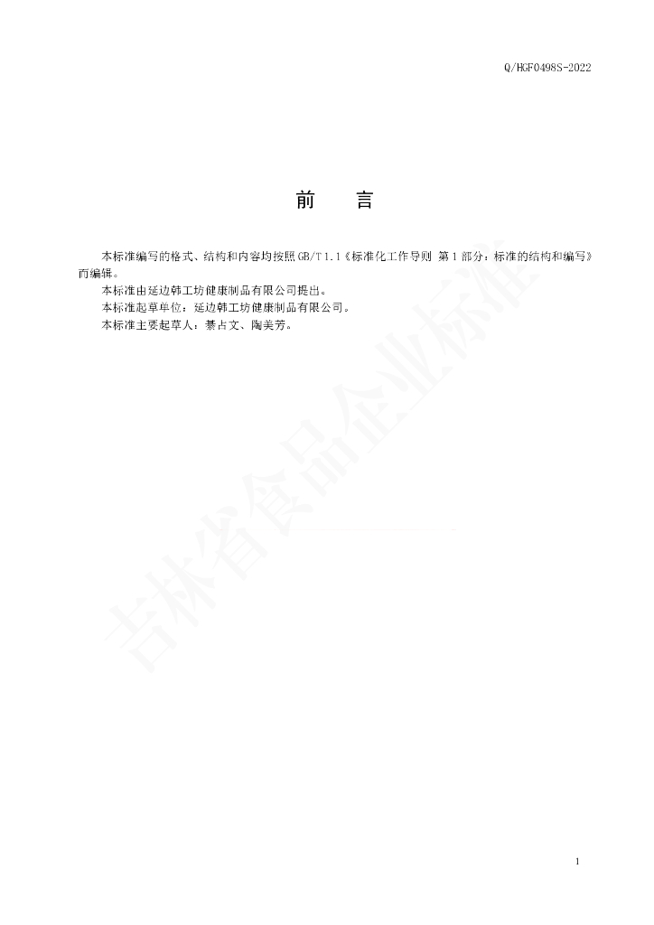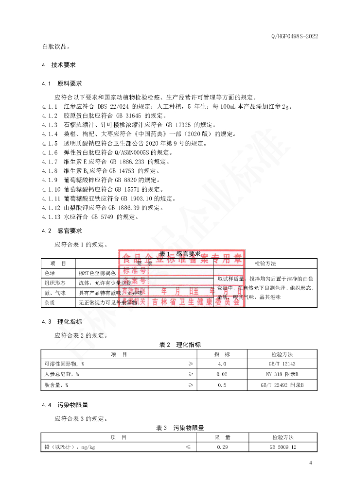 Q/HGF 0498S-2022 红参胶原蛋白肽饮品