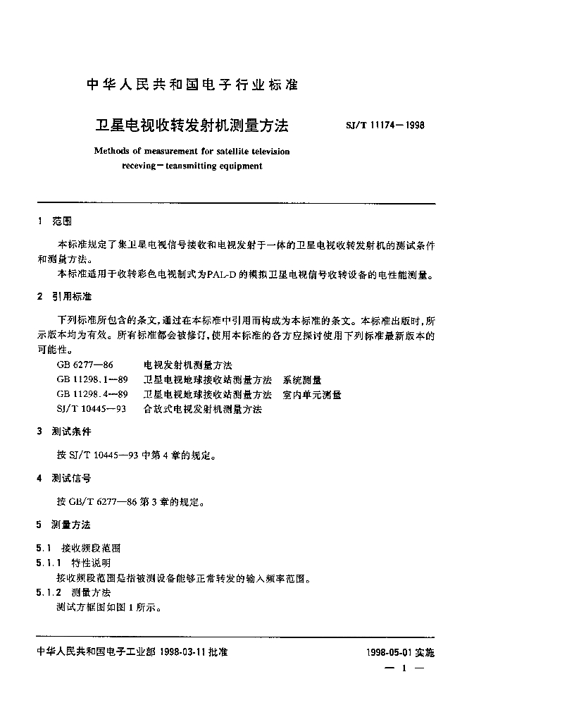 SJ/T 11174-1998 卫星电视收转发射机测量方法