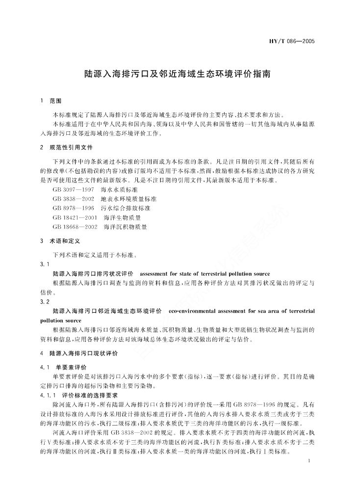 HY/T 086-2005 陆源入海排污口及邻近海域生态环境评价指南