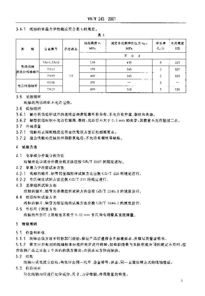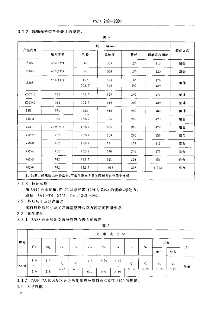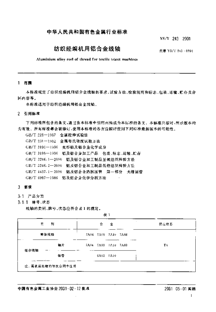 YS/T 243-2001 纺织轻编机用铝合金线轴
