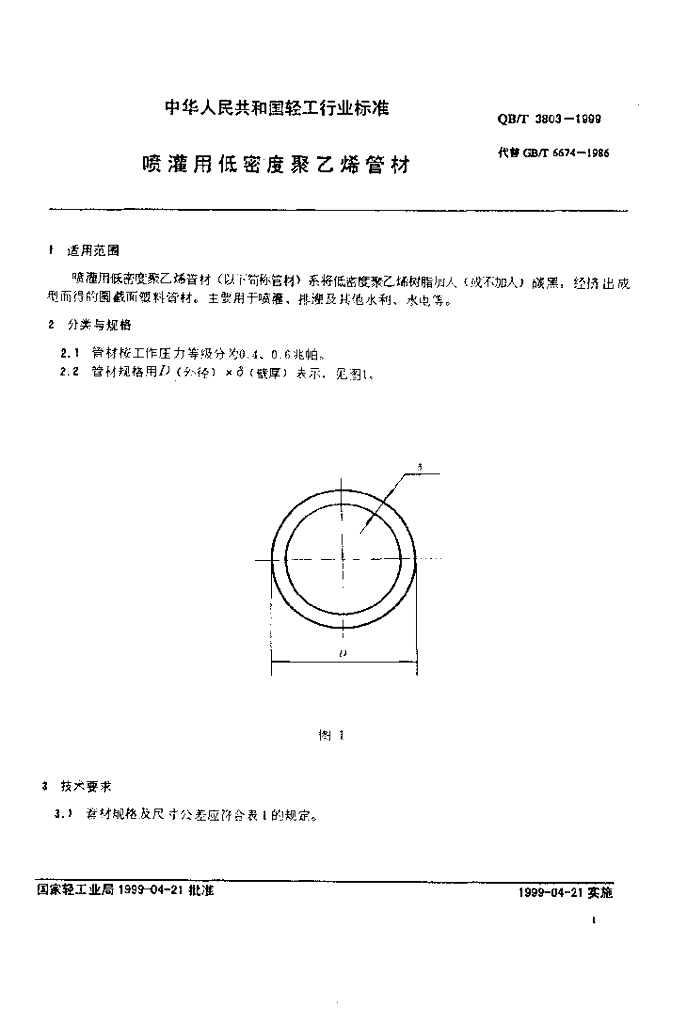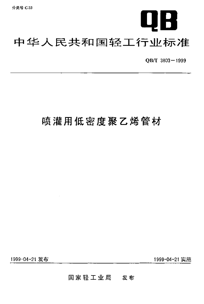 QB/T 3803-1999 喷灌用低密度聚乙烯管材