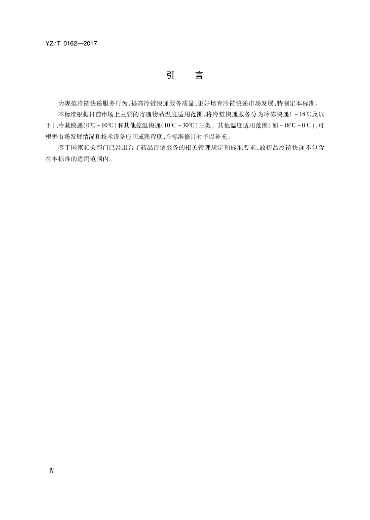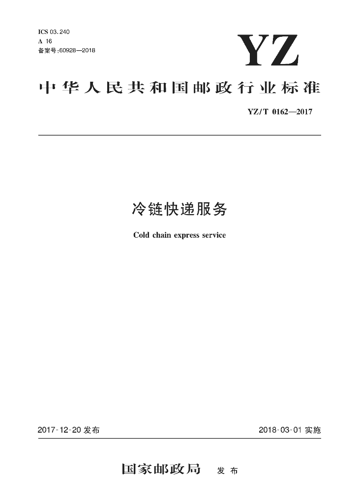 YZ/T 0162-2017 冷链快递服务