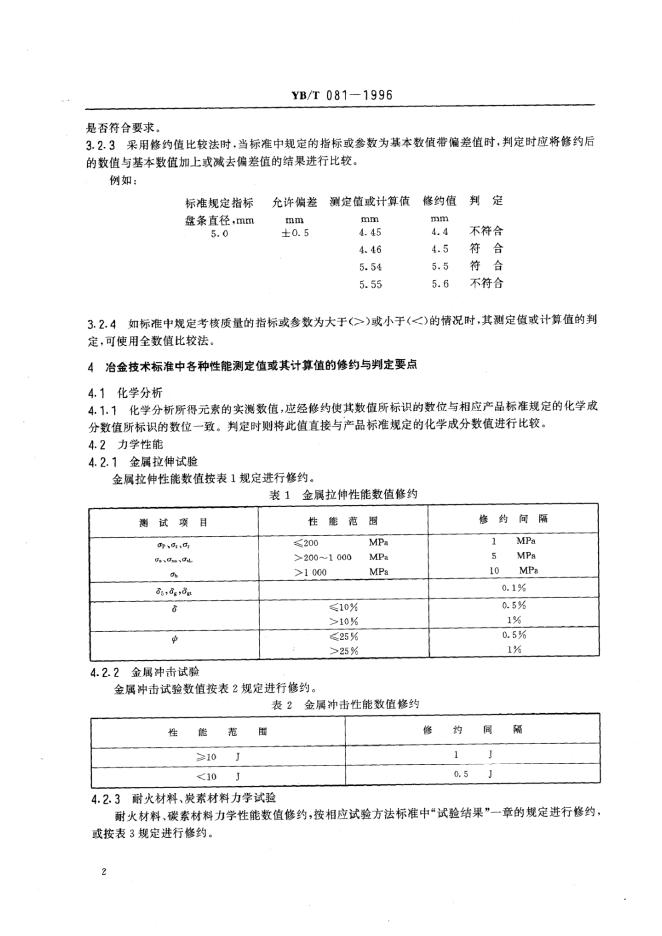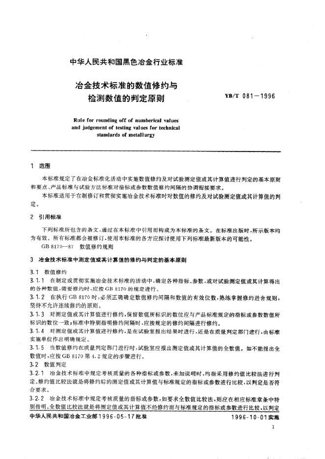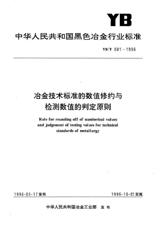 YB/T 0081-1996 冶金技术标准的数值修约与检测数值的判定原则