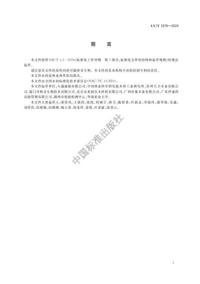 久盛地板有限公司、中国林业科学院木材工业研究所、苏州大卫木业有限公司、厦门市格灵生物技术有限公司、北京未来新实木科技有限公司、广西壮象木叶有限公司、广东祥通供应链管理有限公司、湖州市检验检测中心、华南农业大学