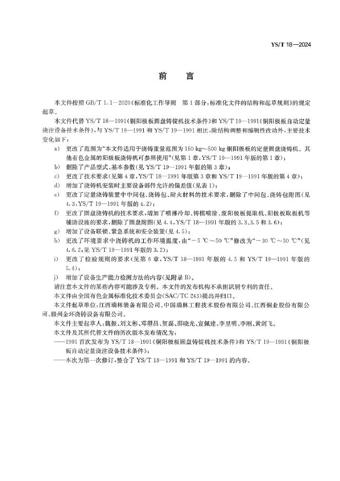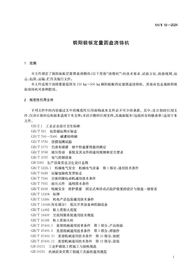YS/T 18-2024 铜阳极板定量圆盘浇铸机