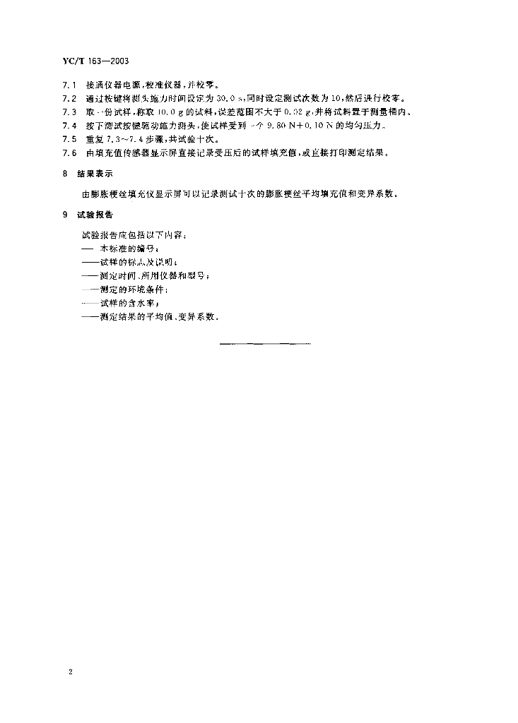YC/T 163-2003 卷烟 膨胀梗丝填充值的测定