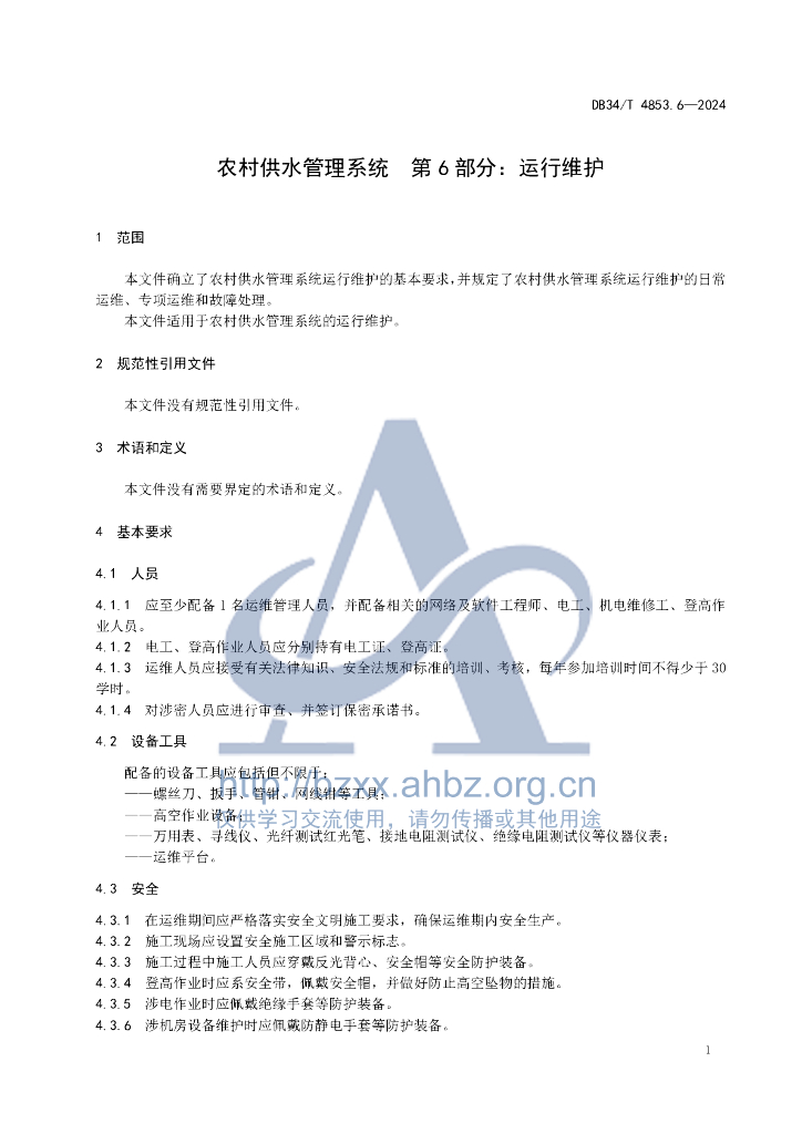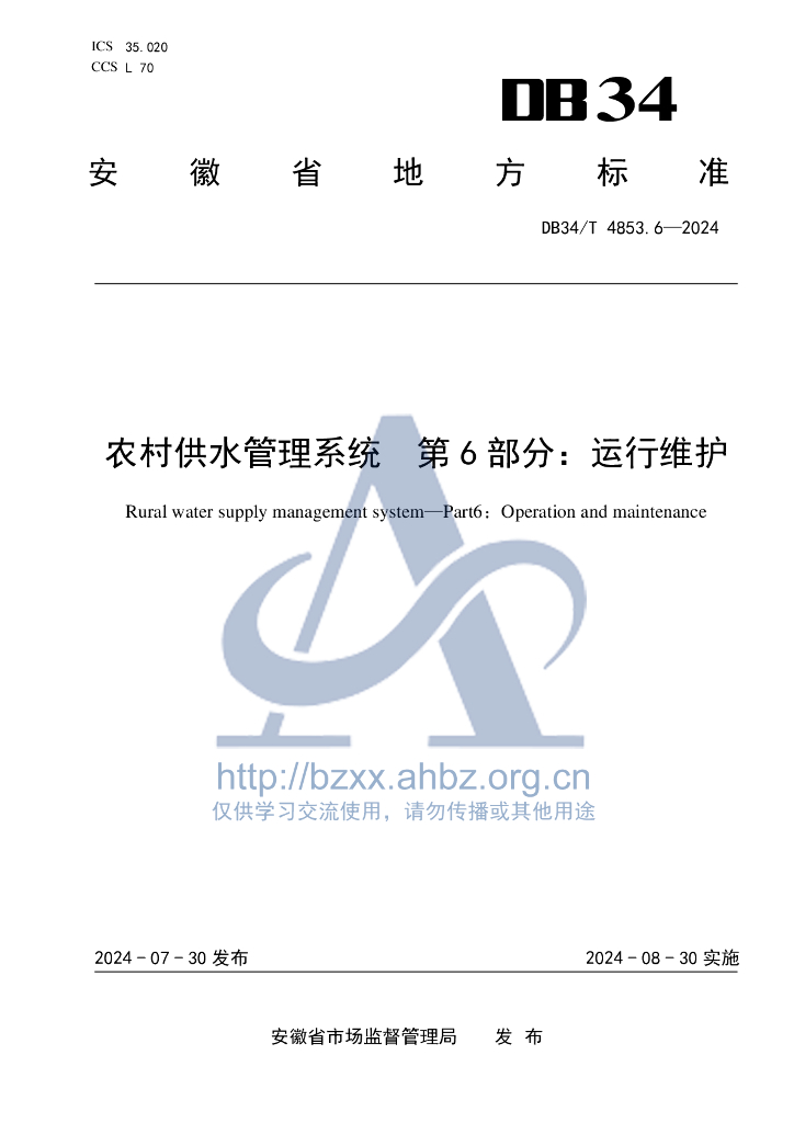 DB34/T 4853.6-2024 农村供水管理系统 第6部分:运行维护